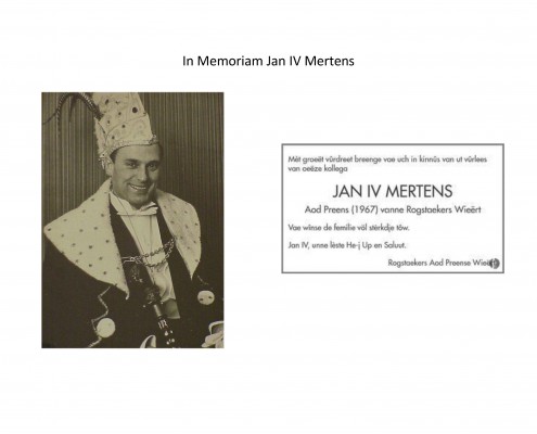 Aan het begin van dit carnavalsseizoen zette Jo van der Velden na 3 x 11 jaar een punt achter zijn succesvolle ‘vastenavondloopbaan’. Op de alweer dertigste Bonte Avond trad voor het eerst het Weerter Mannenkoor op. Met heel veel succes. Mies Kampers werd als leider van de jubilerende (2 x 11 jaar) Boore Hermeni-j geridderd als Officier in de Orde van de Rog. Sjef van den Dungen, Paul Vaessen en Huub van den Bosch werden Groot-Officier.