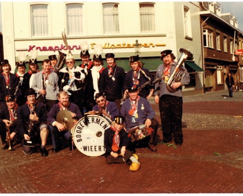 De Bonte Avonden (er moest zelfs een zevende worden ingelast vanwege de overweldigende belangstelling) speelden zich voor het eerst af in Cultureel Centrum De Munt. Op carnavalsdinsdag gaat een lang gekoesterde wens van vorst Jan in vervulling: het ‘hermeniekesconcours’: een bonte, dwaze stoet van zo’n vijftien carnavalsorkestjes en -fanfares die langs het stadhuis trokken. Begin van een traditie.